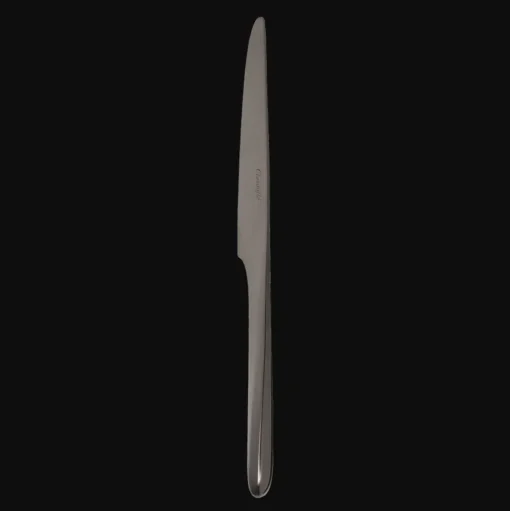 Couteau de table en acier de la collection L’Âme de Christofle en coloris noir. Près de 10 ans après le lancement de « L’Âme de Christofle », la Maison nous convie à un nouveau voyage tout en couleur autour de nouvelles créations. De nouvelles couleurs – obtenues par une application d’alliages de métaux colorés sur la surface des pièces – viennent sublimer la ligne pure des couverts et apporter une touche supplémentaire de modernité aux plus belles tables. L’ÂME DE FEU, pour le coloris cuivre L’ÂME D’OR, pour le coloris or L’ÂME NOIRE, pour le coloris noir Chaque couleur reflète un état d’esprit particulier et permet d’ouvrir le jeu des objets, chacun peut y trouver son humeur et sa personnalité. Recommandations d’entretien : Vos couverts en acier se nettoient aussi bien à la main qu’au lave-vaisselle Utilisation du lave-vaisselle : Entrouvrir la porte dès la fin du cycle pour éviter les tâches de condensation et essuyer les pièces à l’aide d’un chiffon doux si nécessaire.