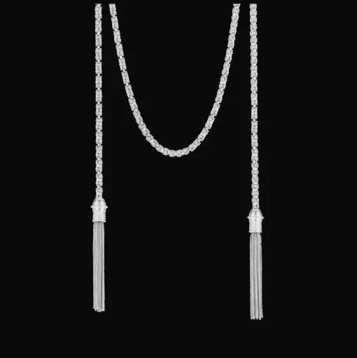 Sterling silver Tie necklace chain from the Pompon collection. The collection honors a motif that has a special place in the history of costume, decoration and, more broadly, the decorative arts: the pompon.